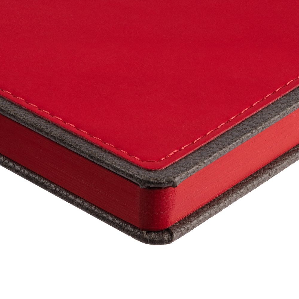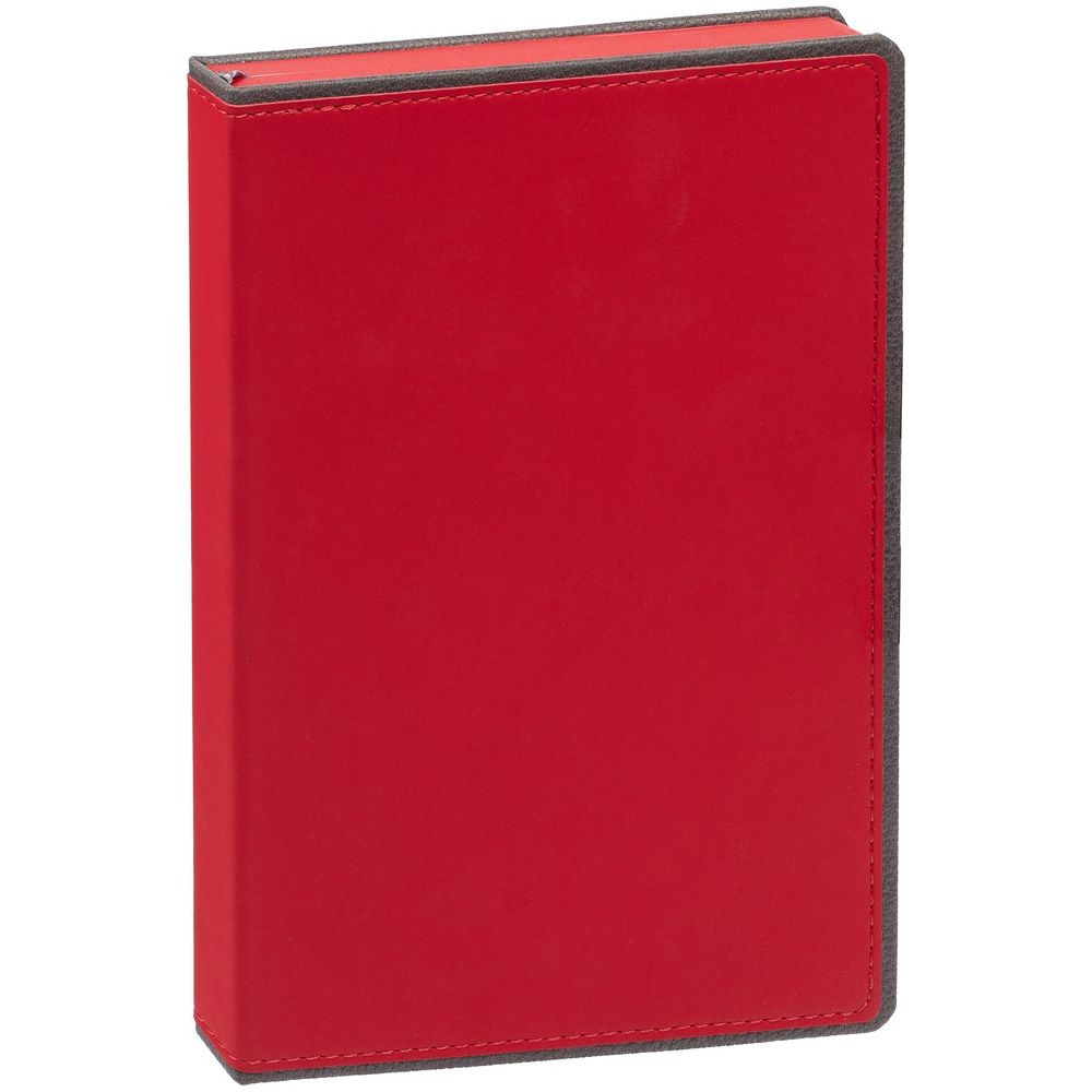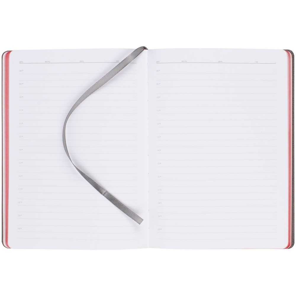 Ежедневник с твердой обложкой, выполнен из материалов Soft Touch Ultra, красный РР и La Fite, серый СС. Ляссе темно-серого цвета.