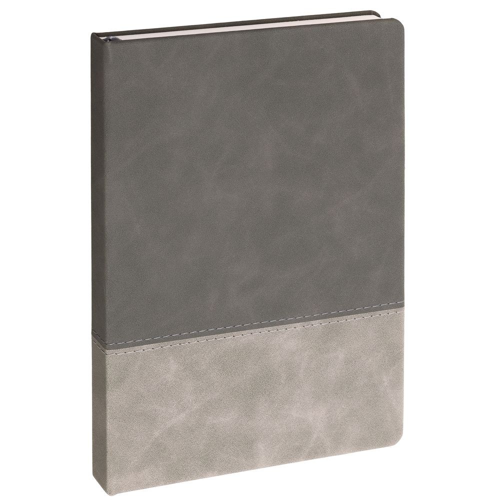 Ежедневник с твердой обложкой, без поролона, со сшивкой материалов Nubuck Touch серый СС, и Nubuck Touch тёмно-серый ЕЕ., дополнен двойным ляссе и петлей-резинкой для ручки.