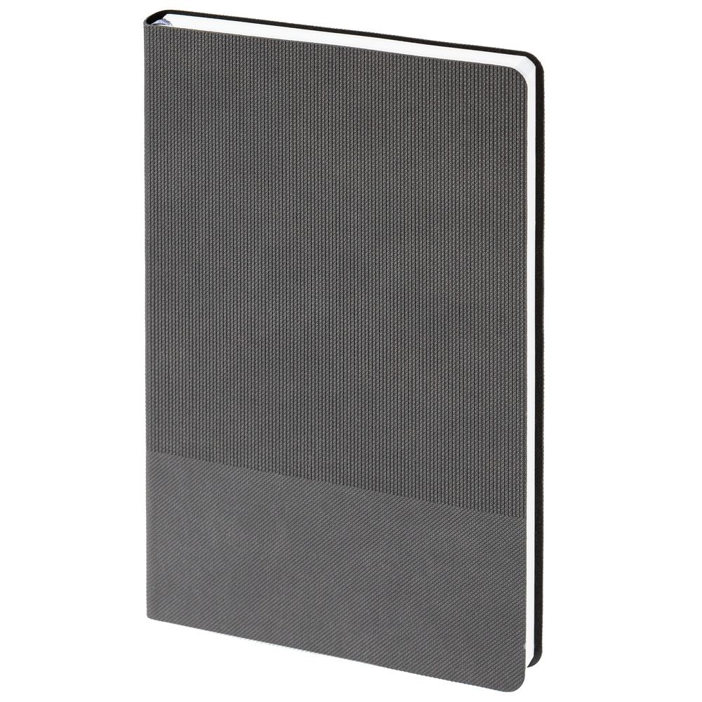 Ежедневник с гибкой обложкой, выполнен из материала Canyon, темно-серый ЕЕ, дополнен ляссе в цвет обложки. Блинтовое тиснение на обложке создает эффект вязаного полотна.