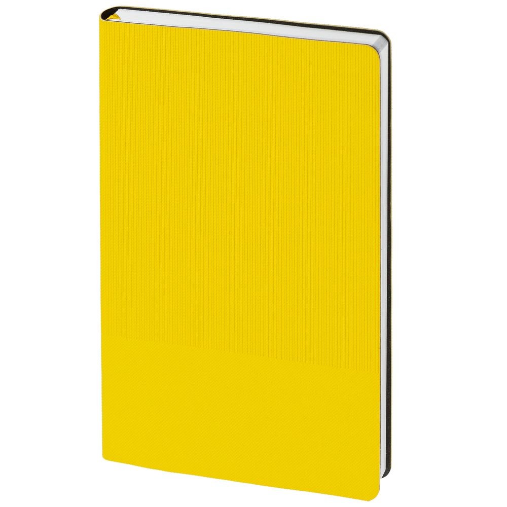 Ежедневник с гибкой обложкой, выполнен из материала Canyon, желтый КК, дополнен ляссе в цвет обложки. Блинтовое тиснение на обложке создает эффект вязаного полотна.