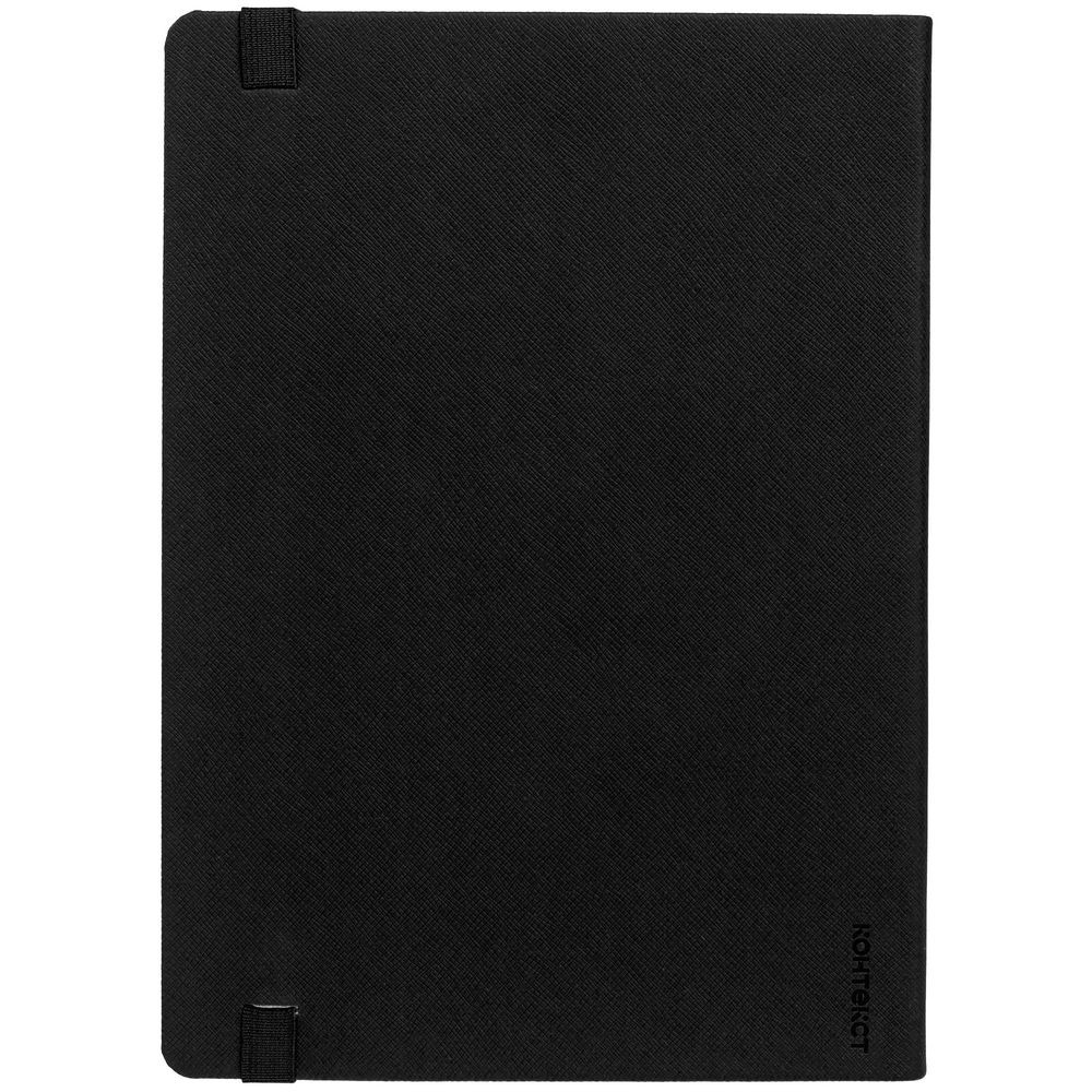 Ежедневник с твердой обложкой выполнен из материала Nice Touch, черный АА, и дополнен резинкой шириной 1 см и ляссе черного цвета.