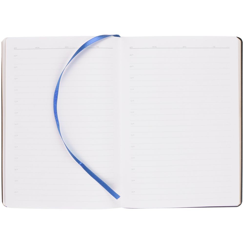 Ежедневник с гибкой обложкой, выполнен из материала Nebraska, темно-синий ХХ, дополнен ляссе темно-синего цвета.