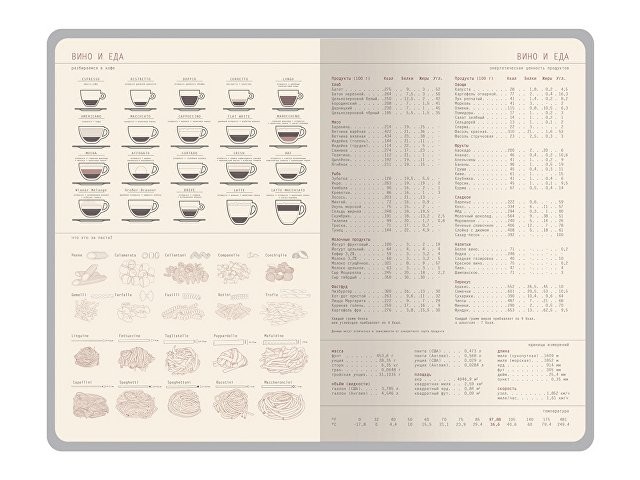 Ежедневник формата А5 имеет внутренний блок из 272 страниц. Блок изготовлен из бежевой бумаги плотностью 70 г/м2 и содержит: