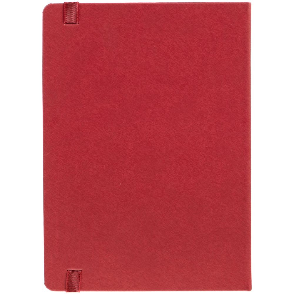 Ежедневник с твердой обложкой, выполнен из материала Latte, красный РР, обрез красного цвета, дополнен резинкой и ляссе красного цвета.