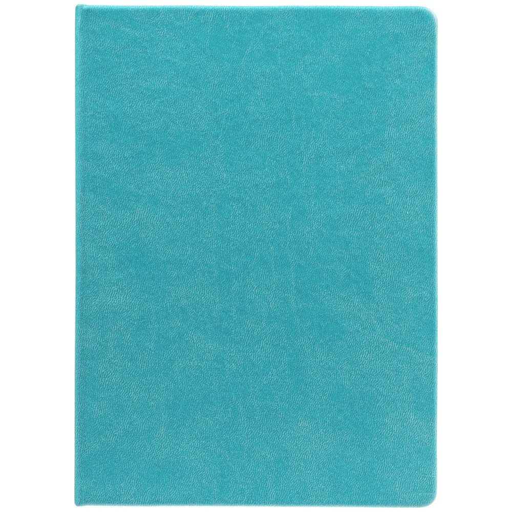 Ежедневник с твердой обложкой. Выполнен из материала Latte, бирюзовый, дополнен ляссе в цвет обложки.