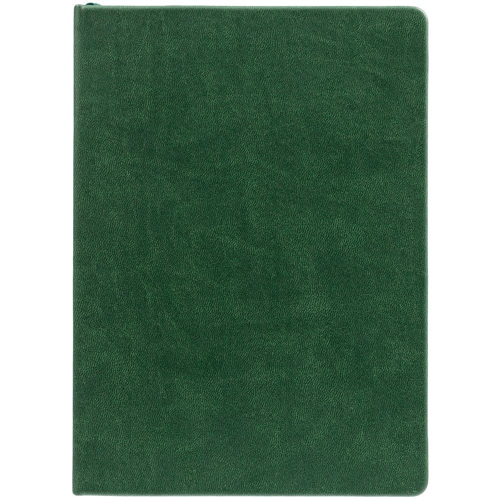 Ежедневник с твердой обложкой. Выполнен из материала Latte, зеленый, дополнен ляссе в цвет обложки.