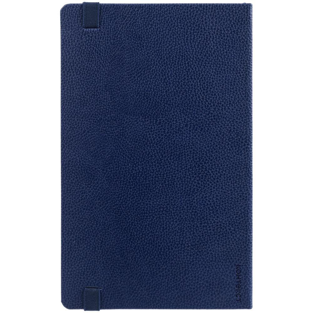 Ежедневник с твердой обложкой, выполнен из материала LaFite, темно-синий ХХ,дополнен резинкой с металлическим круглым шильдом и ляссе в цвет обложки.