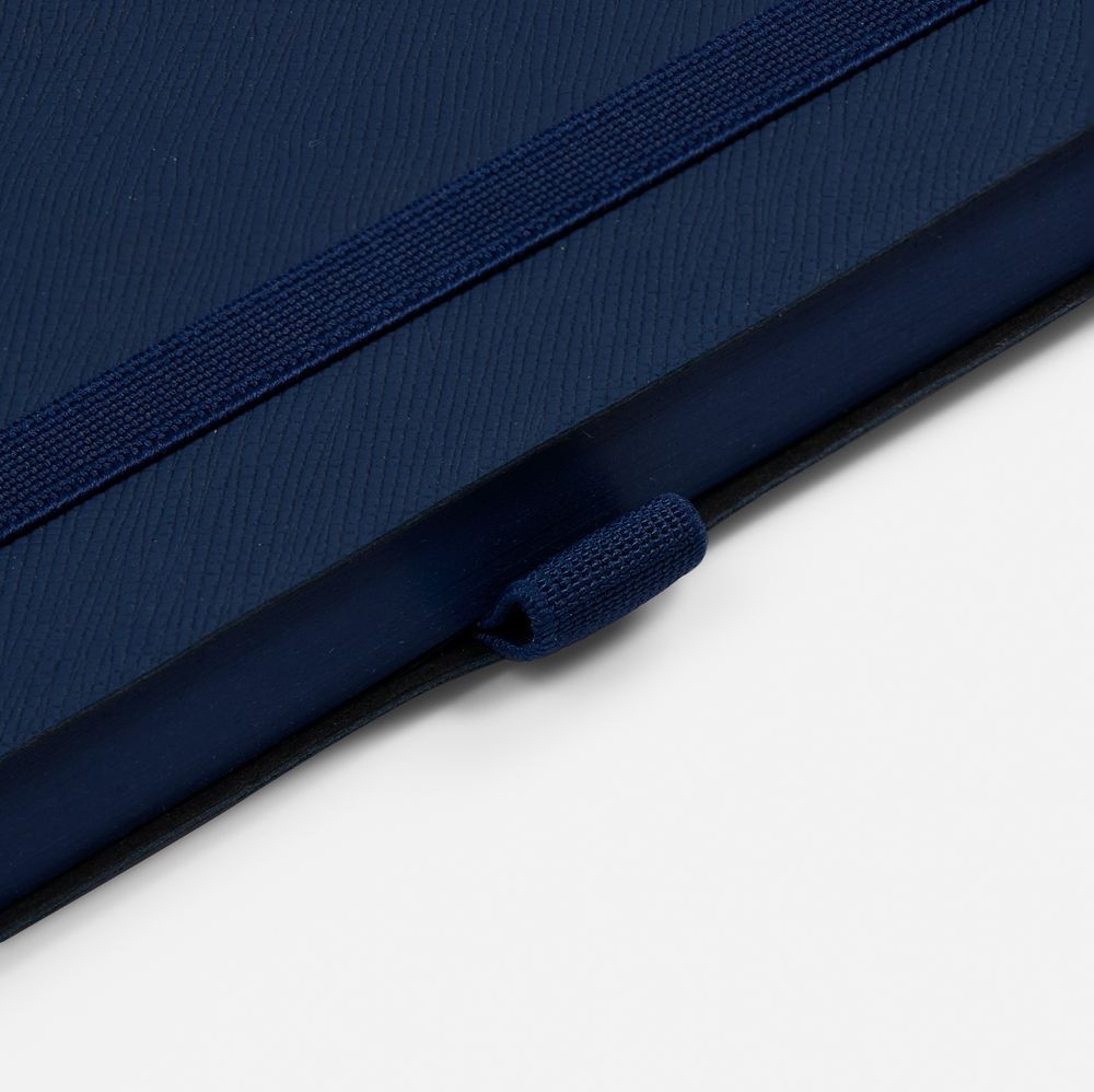 Ежедневник с гибкой обложкой, выполнен из материала Nice Touch, темно-синий ХХ, дополнен цветными ляссе и петлей-резинкой для ручки.