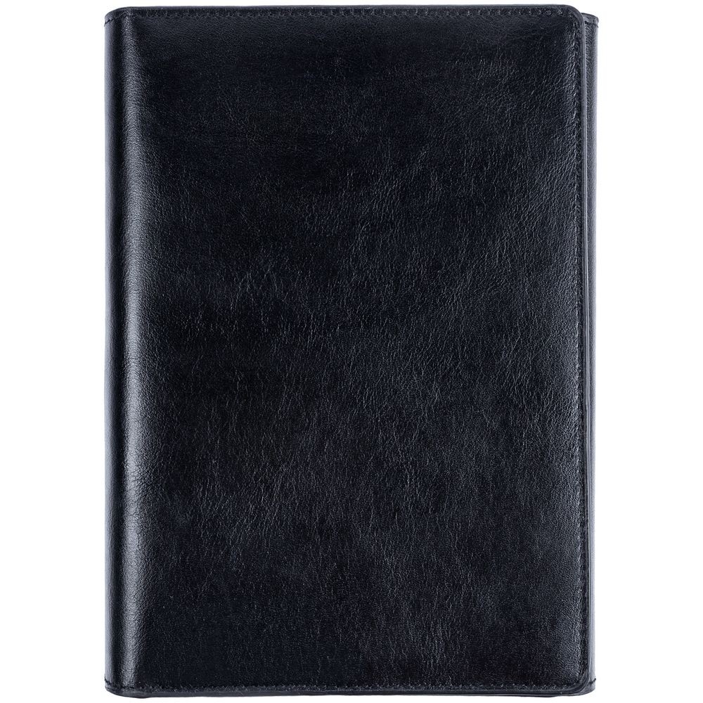 Ежедневник со съемной обложкой-портфолио из натуральной кожи, с капталом, репсовым ляссе и окрашенным срезом обложки в цвет материала.