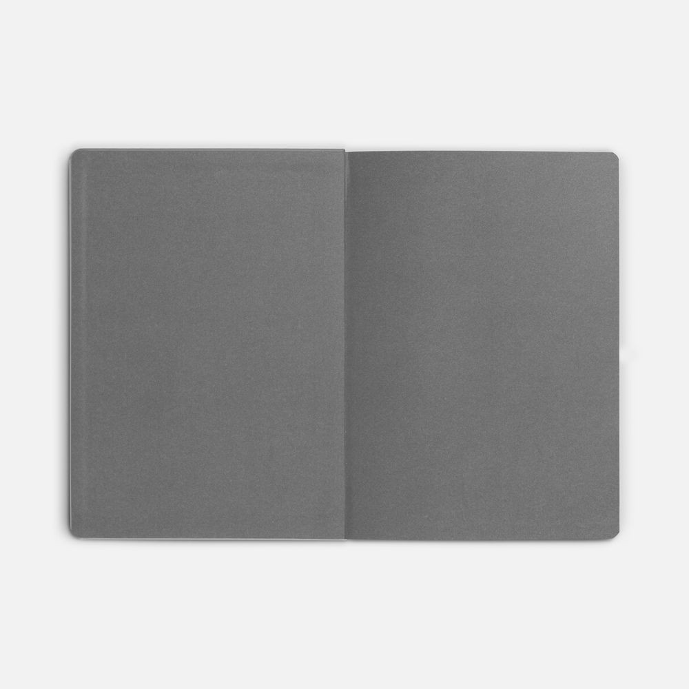 Ежедневник с твердой обложкой и тонированным обрезом, выполнен из материала Soft Touch, серый СС, дополнен ляссе в цвет обложки.
