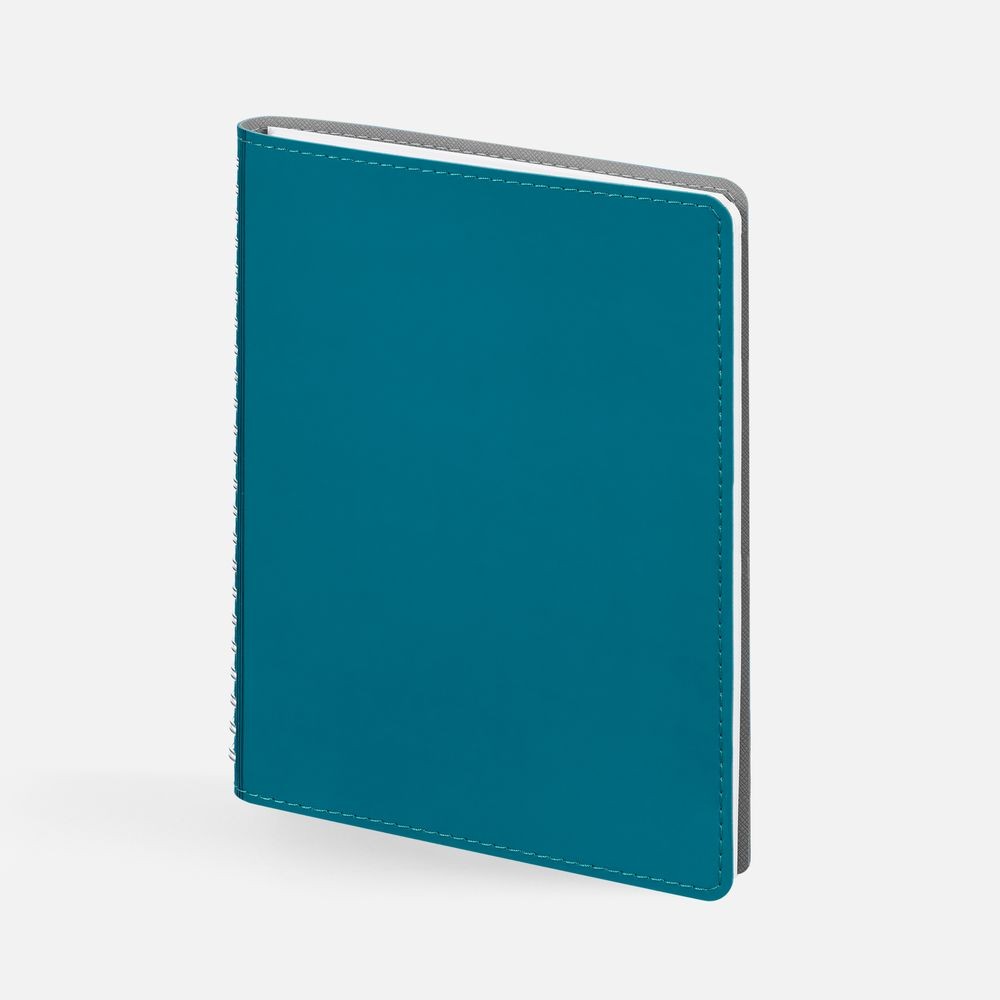 Ежедневник с гибкой обложкой, выполнен из материалов Soft Touch, цвет морской волны II и Nice touch, серый СС.