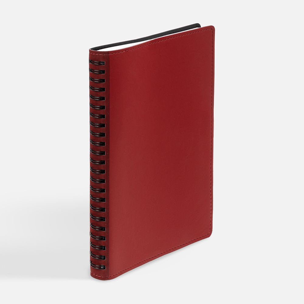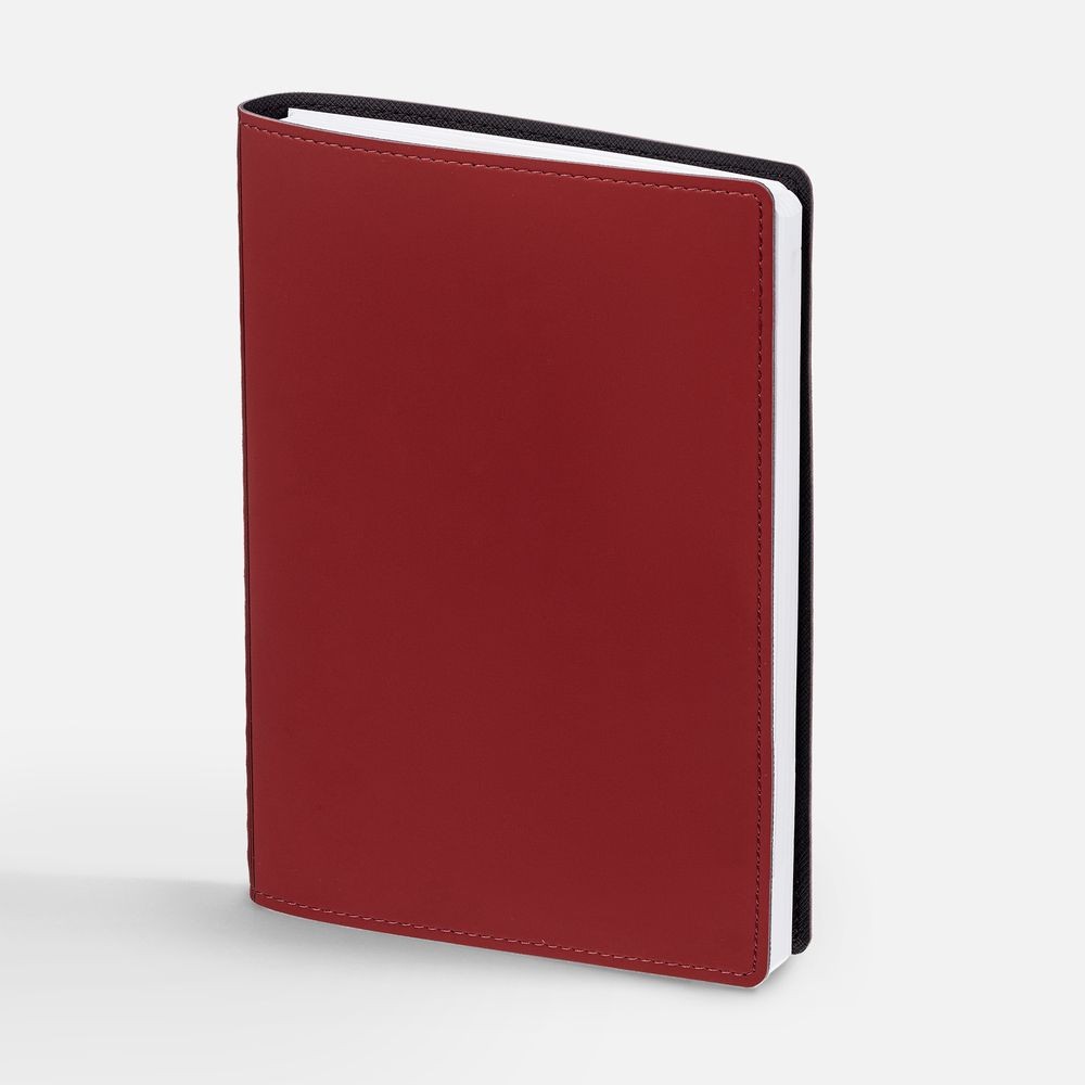 Ежедневник с гибкой обложкой, выполнен из материалов Soft Touch, красный РР и Nice Touch, черный АА.