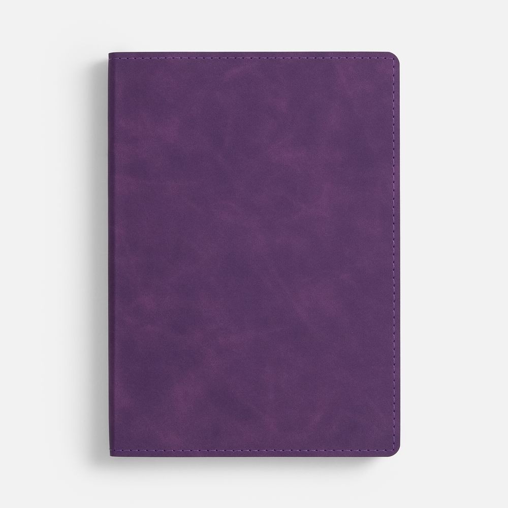 Ежедневник в клетку, с гибкой обложкой, выполнен из материала Nubuck Touch, фиолетовый UU, дополнен ляссе фиолетового цвета.