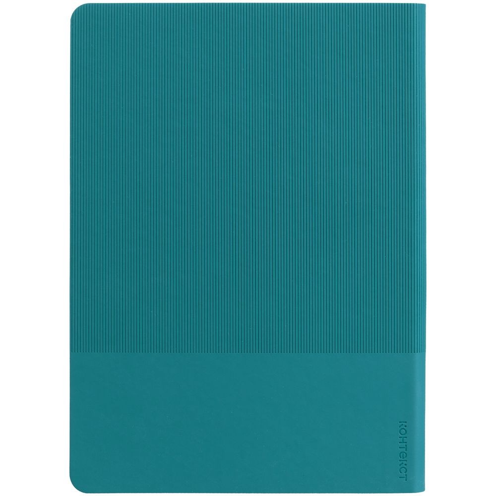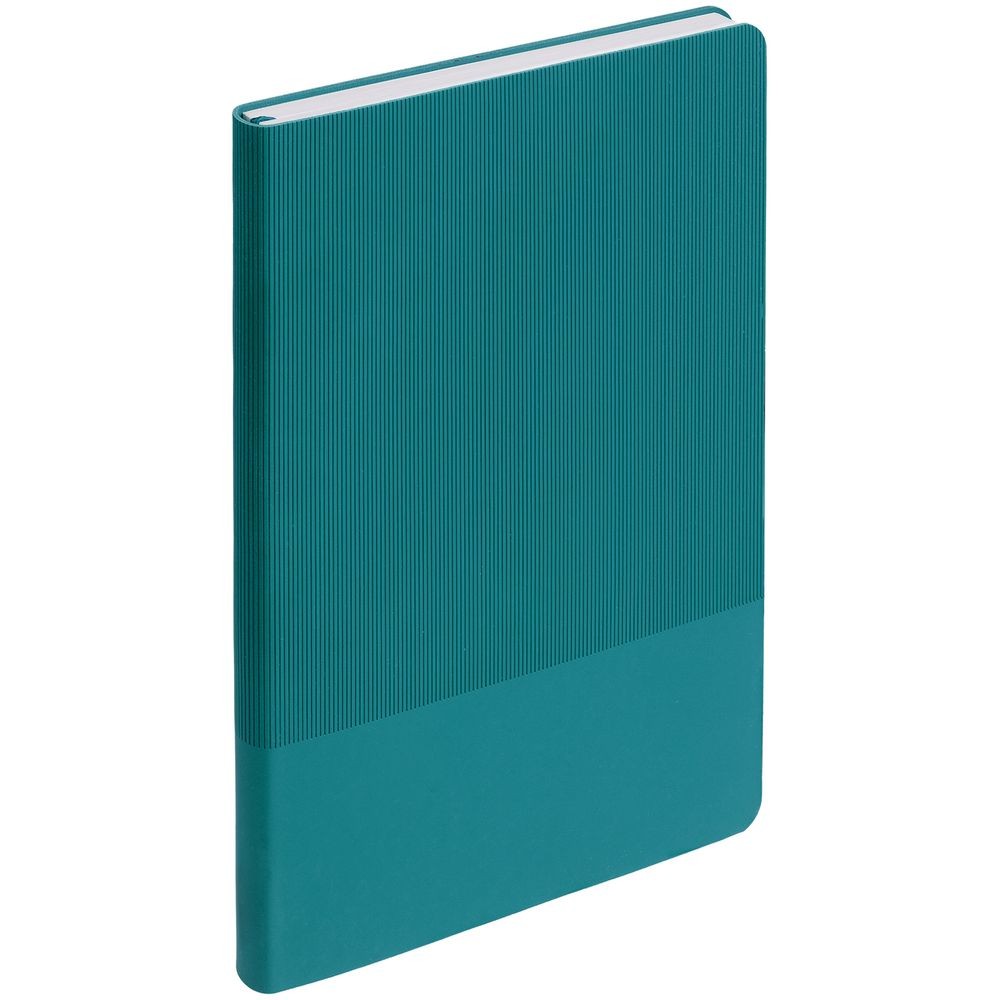 Ежедневник с гибкой обложкой выполнен из материала Soft Touch, цвет морской волны II и Latte, цвет морской волны (внутренний материал); дополнен ляссе бирюзового цвета и фактурным тиснением обложки.