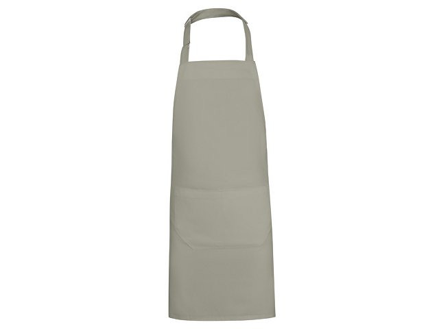 Длинный твиловый фартук из переработанного полиэстера и хлопка. Шейный ремешок с регулируемой застежкой. Завязки по бокам. Два передних кармана.