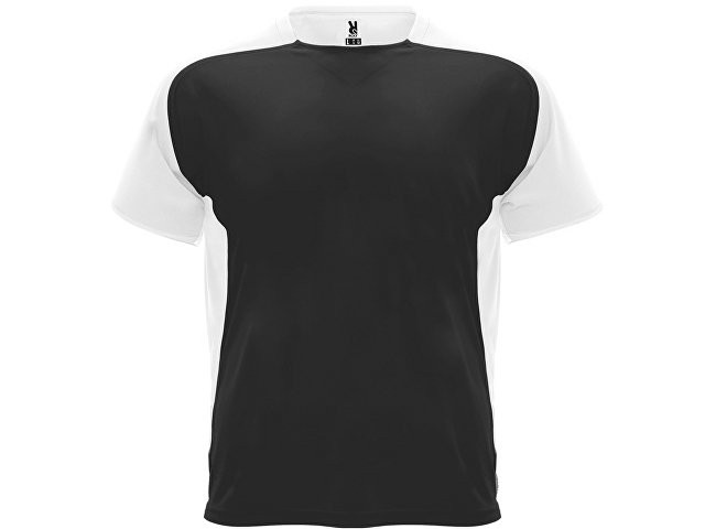 Спортивная футболка с коротким рукавом реглан. Круглый вырез горловины. Контрастные рукава и боковые вставки.