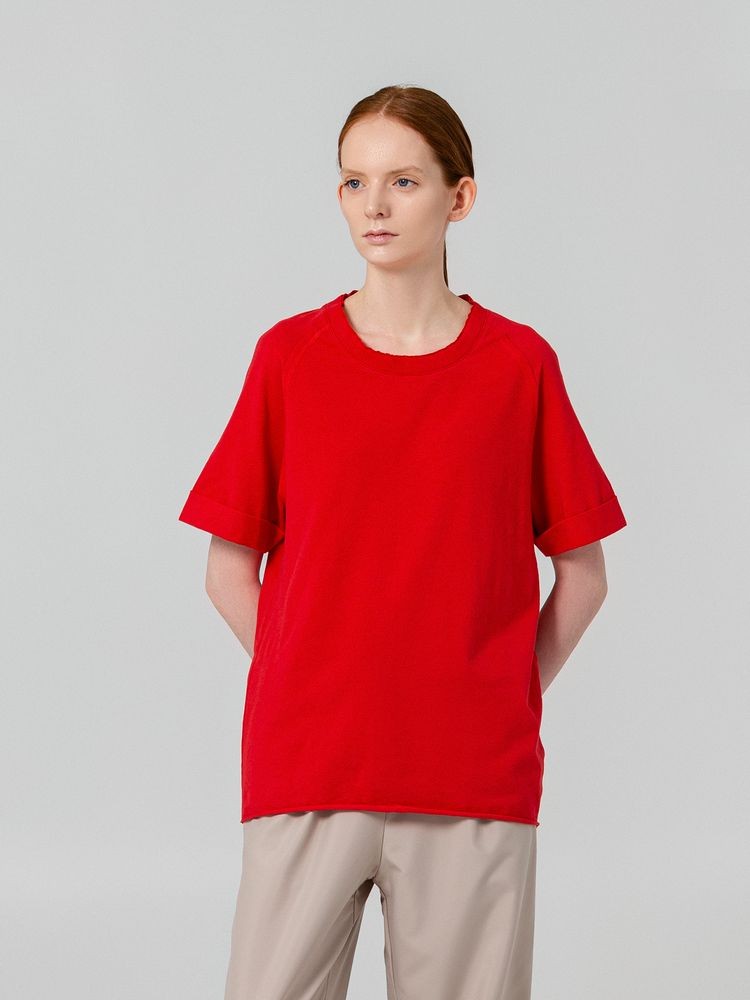 • Открытый край по горловине, рукавам и низу изделия