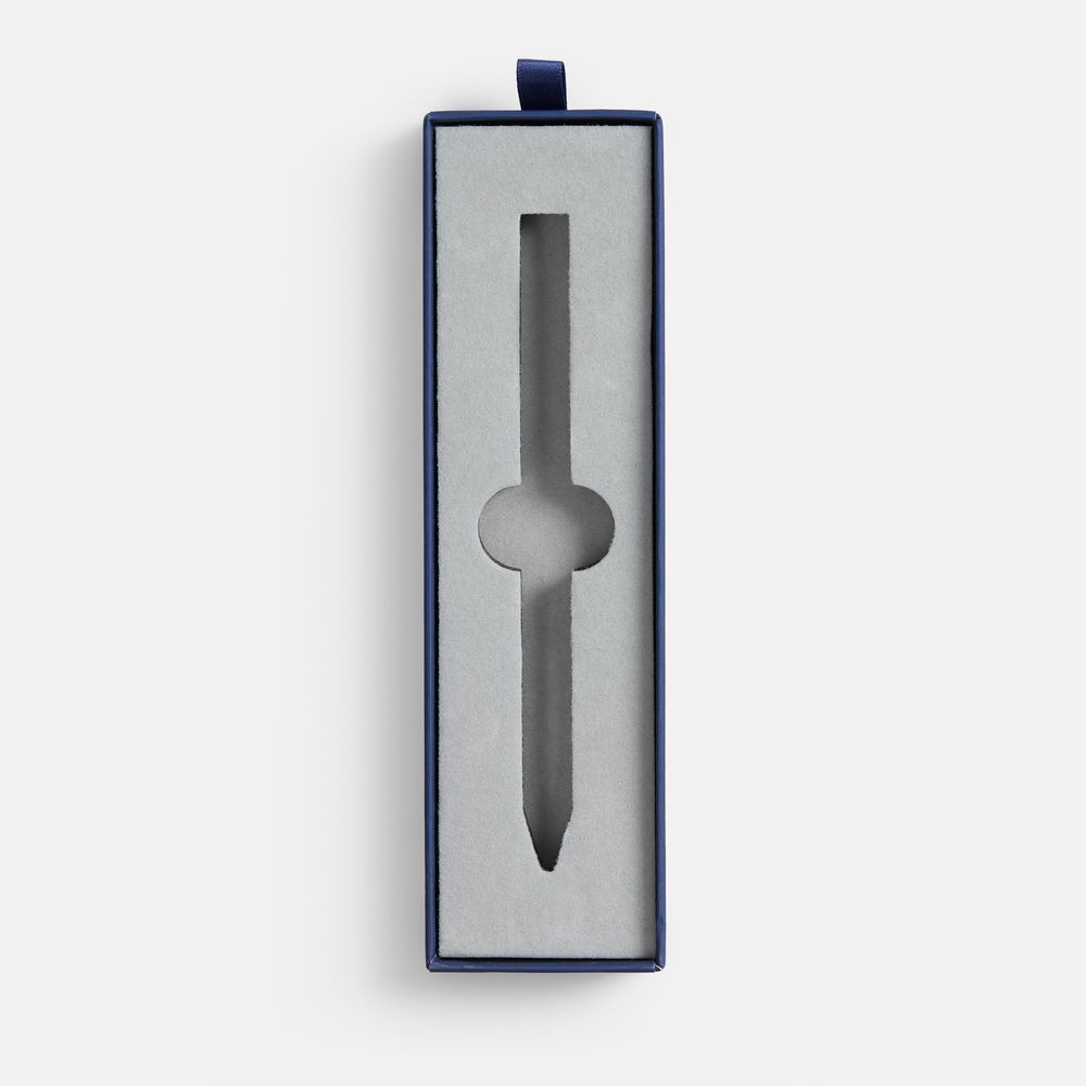 Картонный футляр с покрытием софт-тач с флокированным ложементом для одной ручки.