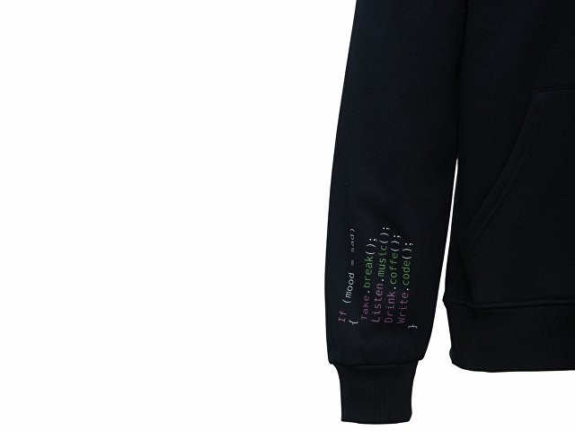 Худи с капюшоном ворот на молнии. Шнур в капюшоне с металлическими наконечниками. Отделка горловины спинки внутри тесьмой, Риб 2х2 по низу изделия и манжетам. Удобный карман кенгуру.