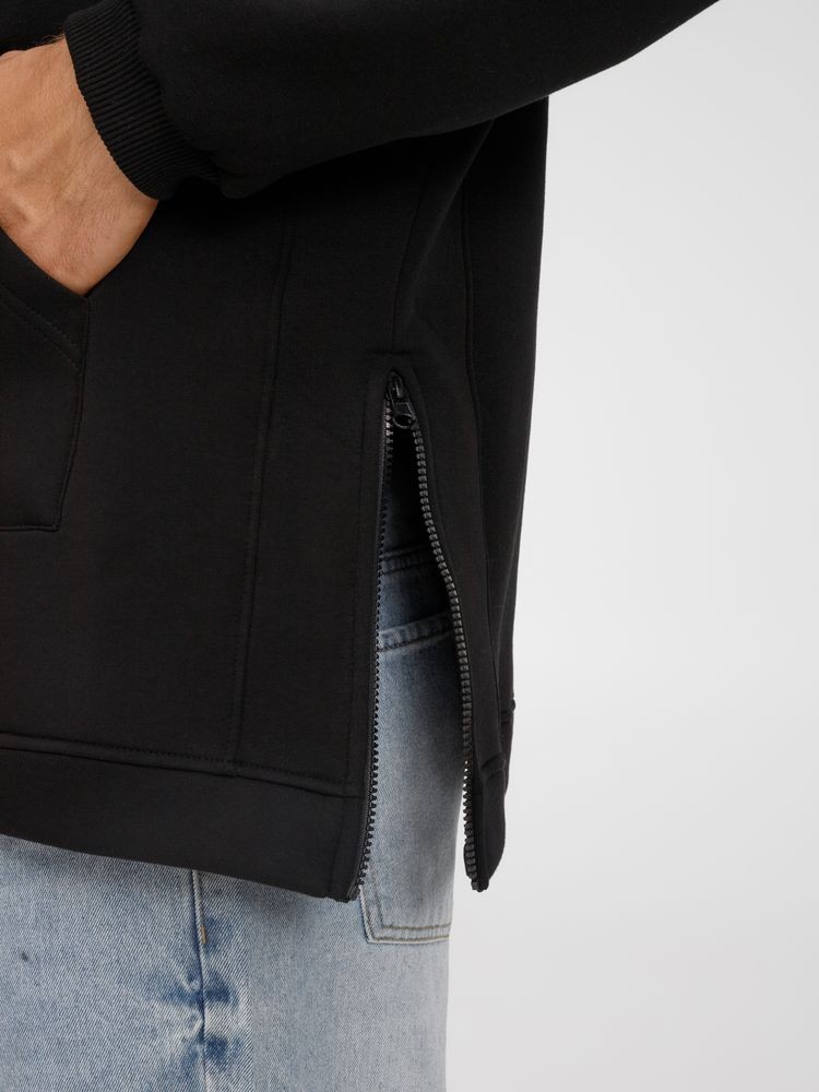 Худи унисекс удлиненного силуэта с молниями в боковых швах.