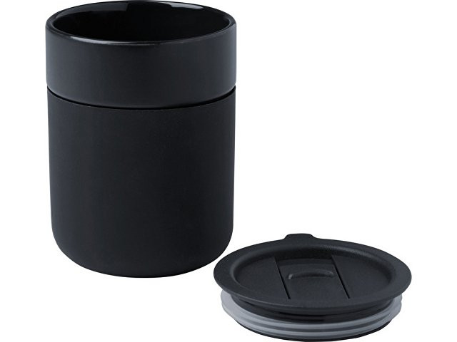 Java керамическая кружка емкостью 330 мл с силиконовой оберткой и пластиковой крышкой - сплошной черный