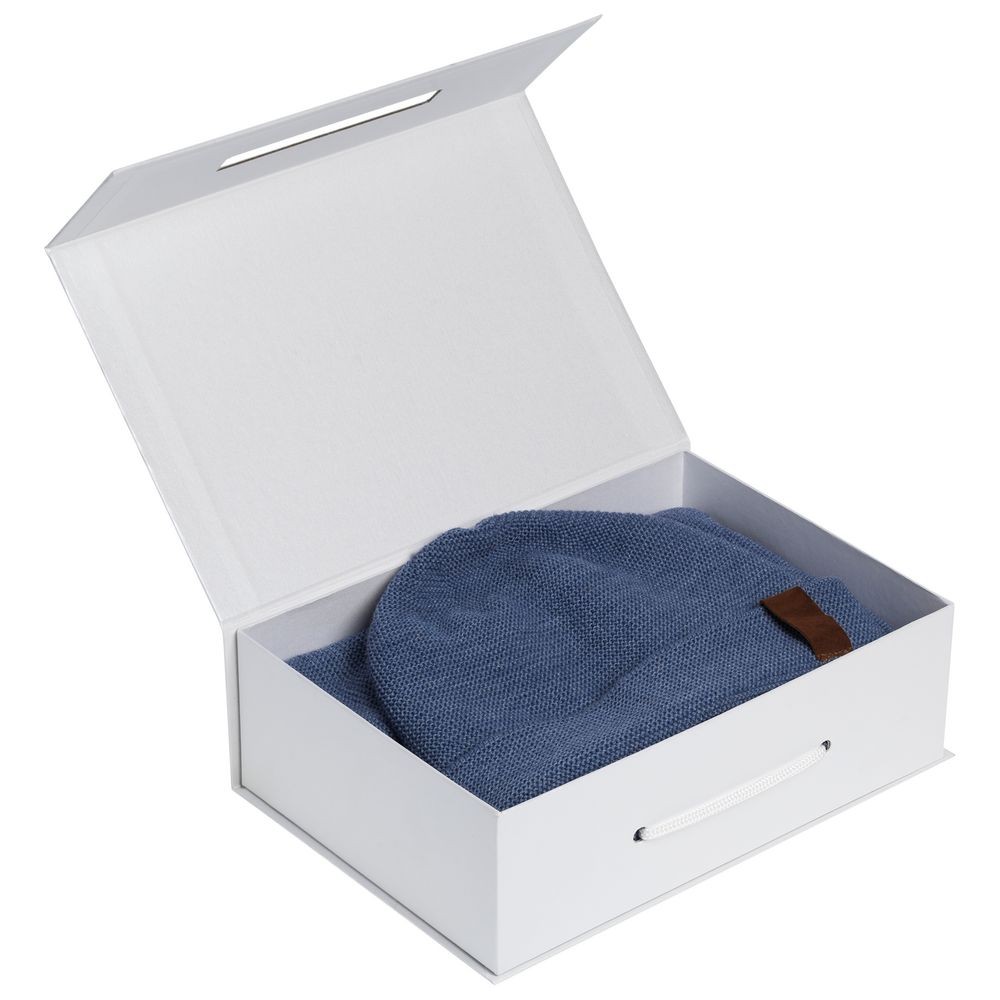 Коробка выполнена из переплетного картона, кашированного дизайнерской бумагой Majestic, с крышкой на магните.Длина ручки 35 см.Конструкция коробки предусматривает наличие технологического зазора шириной до 2 мм по линии сопряжения короба и крышки.