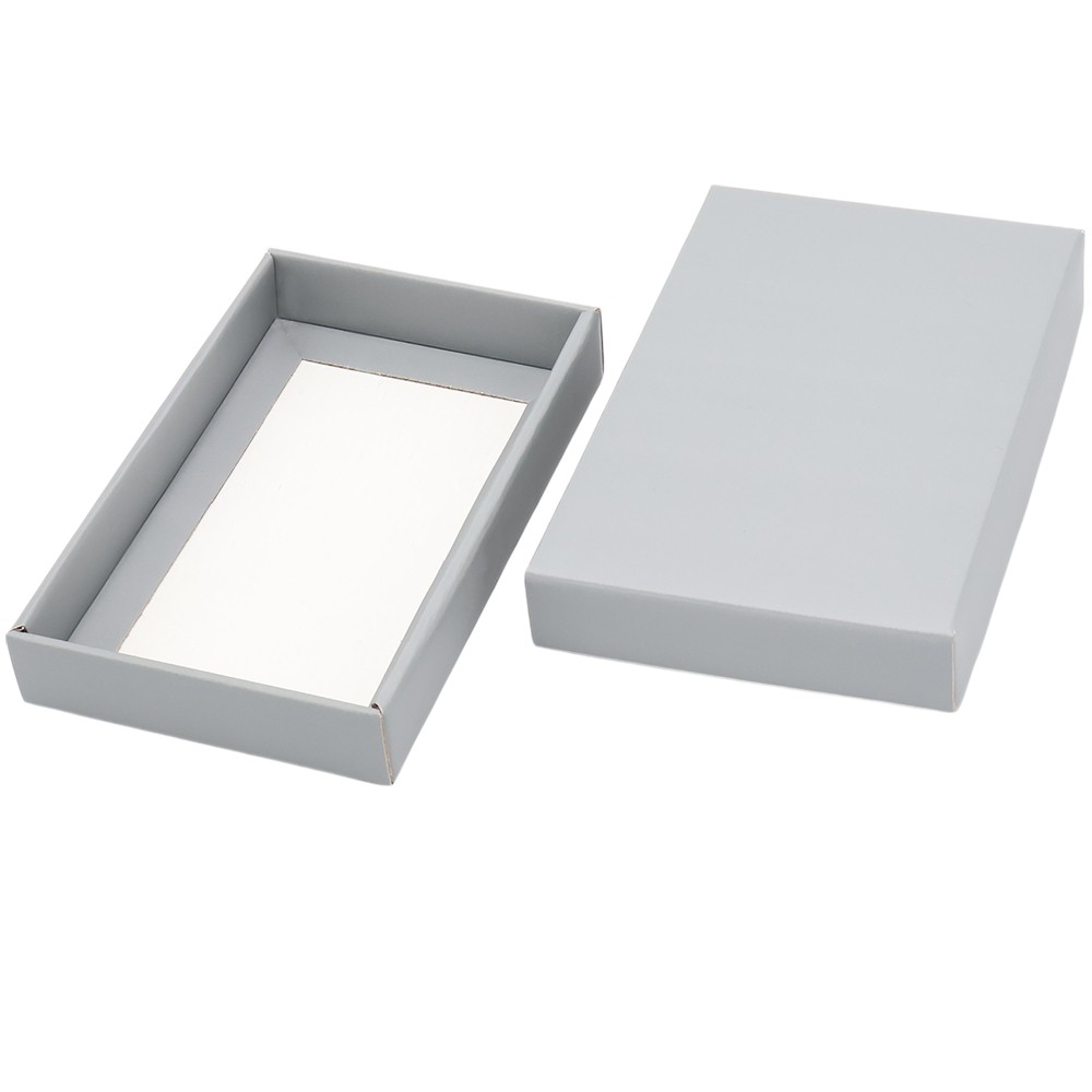 Стильная и функциональная коробка Protect типа "Крышка+дно" в классическом сером цвете с матовой поверхностью.