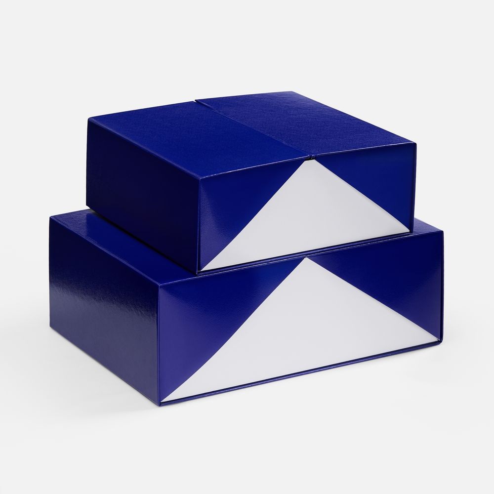 Коробка из переплетного картона 2 мм с оригинальной конструкцией: две симметричные створки открываются, создавая эффектную презентацию содержимого. Складная система на предустановленный двусторонний скотч делает сборку коробки быстрой и интуитивно понятной. Лайнер с полуглянцевым ламинированием устойчив к механическим воздействиям и надолго сохраняет безупречный вид. Поставляется в плоском виде.