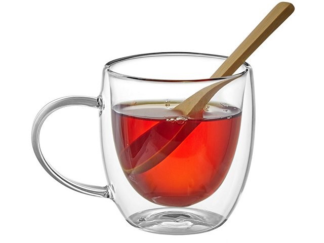 - Практичный комплект — кружка 250 мл, ложечка 13 см и удобная подставка 16×11,3 см.