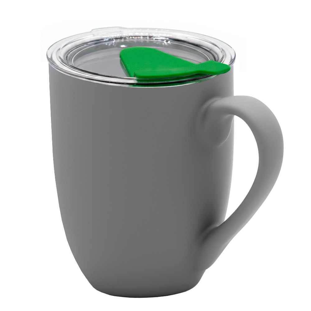 НОВИНКА - кружка Velvet Duo!! Уют в каждой детали. Керамическая кружка Velvet Duo дарит не только тепло любимого напитка, но и приятные тактильные ощущения благодаря нежному покрытию soft-touch с бархатистой поверхностью. А практичная крышка с аккуратным отверстием для питья на защёлке позаботится о том, чтобы ни капли не пролилось на клавиатуру или диван. Ваш идеальный спутник для неспешного утра, рабочего дня или отдыха на террасе. Набор состоит из: 1. Кружка керамическая Elegante софт-тач, тёмно-серая (артикул 6109.20) 2. Крышка Funny, зелёная (артикул. 6141K.04) Цвет максимально приближен к Pantone 355 С Пейте с комфортом. В любой обстановке!