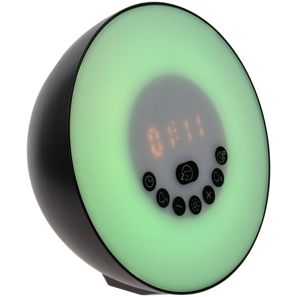 Лампа активируется за некоторое время до настроенного будильника и постепенно увеличивает яркость вплоть до момента, когда вы планируете окончательно проснуться. Эффект мягкого пробуждения можно дополнить звуками природы: шумом волн или пением птиц.