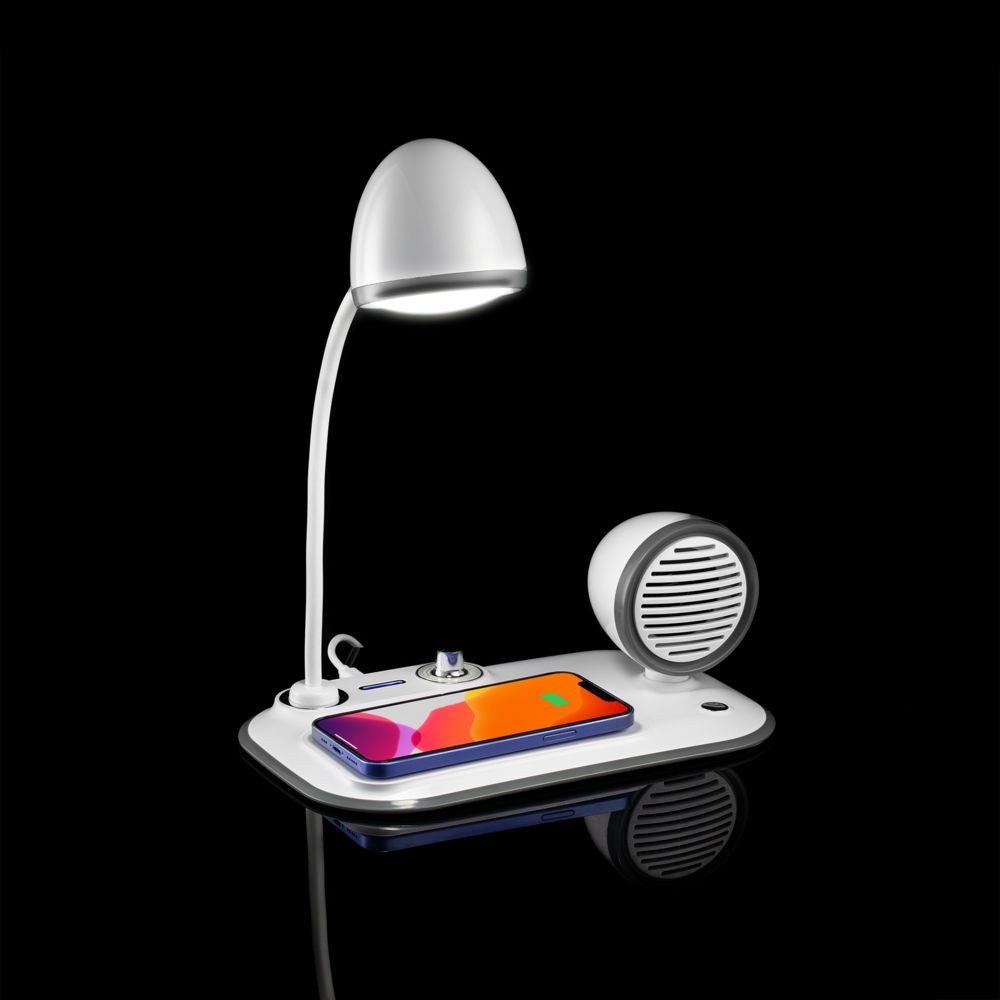 Устройство способно не только осветить рабочее пространство, помочь зарядить гаджет, но и удивить своим мультимедийным функционалом благодаря мощному динамику на 5 Вт. Мощности встроенной колонки хватает на то, чтобы заполнить звуком помещение до 25 м².