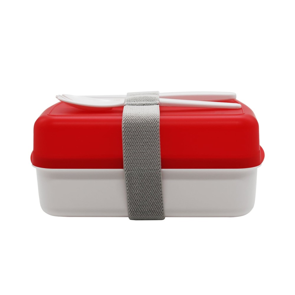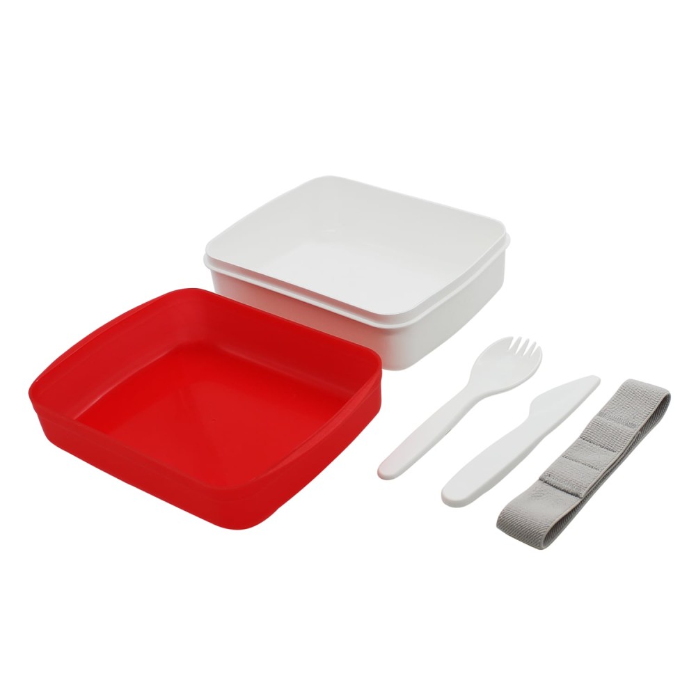 Компактный и практичный ланч-бокс для сэндвичей и вторых блюд, отлично сохраняет свежесть и вкус любимой еды. Контейнер удобно брать с собой на работу, учебу или в путешествие. В комплекте столовые приборы, которые крепятся с помощью эластичного ремня. Ланч-бокс произведен из переработанного пластика и не содержит вредных веществ. Поставляется без индивидуальной упаковки. • 100% пригоден для вторичной переработки • Не содержит бисфенол А, меламин, формальдегид, фталат • Можно мыть в посудомоечной машине (60 °) • Можно использовать в микроволновой печи