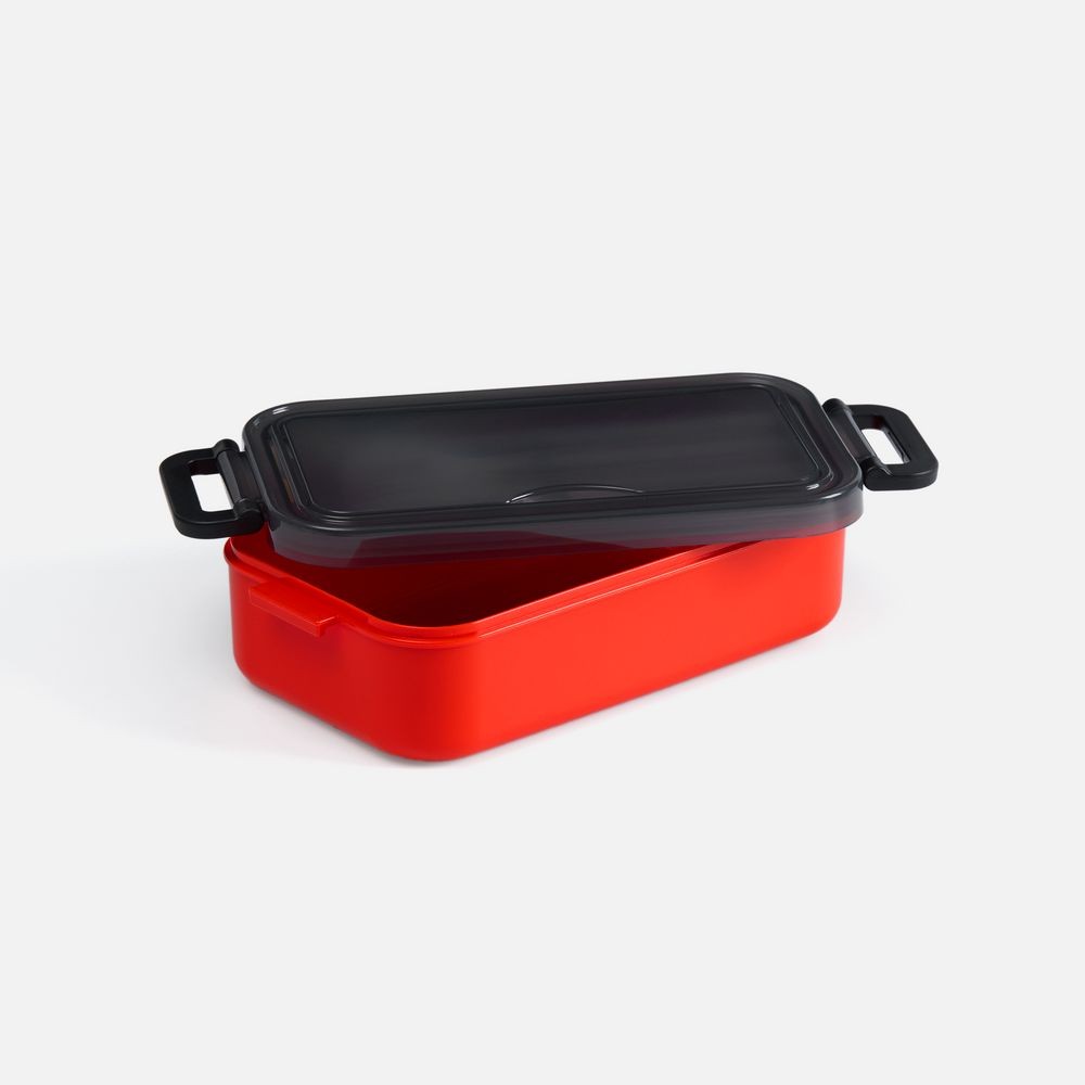 Базовый ланчбокс Pranzo в минималистичном исполнении ненавязчиво напоминает о пользе и простоте сбалансированного питания при любом ритме жизни. Будет незаменим на прогулке или пикнике, также его удобно брать с собой в офис или в школу.Удобная конструкция с крышкой на защелках обеспечивает надежную фиксацию. Специальное отделение под крышкой позволяет хранить столовые приборы, освобождая дополнительное пространство в сумке. Емкость 800 мл.