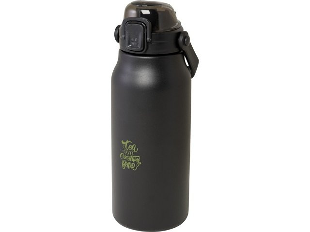 Эта большая бутылка из переработанной нержавеющей стали, сертифицированной RCS, позволит вам поддерживать водный баланс в течение дня и оставаться стильным. Медная вакуумная изоляция сохранит напитки горячими или холодными в течение нескольких часов, а благодаря складной ручке ее легко переносить. Бутылка герметична и имеет удобный механизм открывания с помощью кнопки. Объем составляет 1600 мл. Поставляется в подарочной коробке из переработанного картона. Recycled stainless steel, Recycled PP Plastic. Packaging: FSC Mix Credit P5.1 CU-COC-877277.