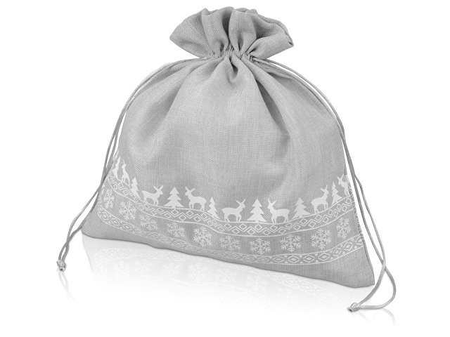 Мешочек подарочный новогодний, джут, большой, серый