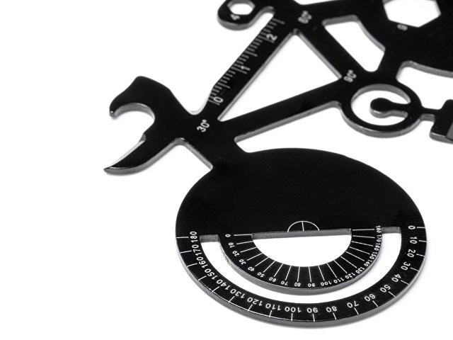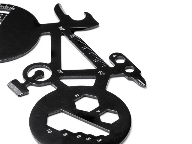 Расчет нанесенияМногофункциональный инструмент из нержавеющей стали в форме велосипеда. 11 функций: открывалка для консервных банок, угловой транспортир, отвертки, гаечные ключи и линейки.