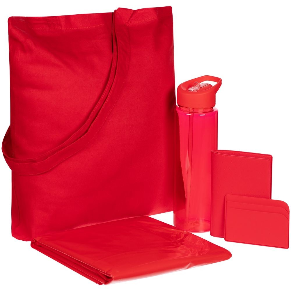 Материал: обложка для паспорта, чехол для карточек - искусственная кожа; бутылка - пластик; сумка - хлопок 100%, плотность 105 г/м²; дождевик - полиэтилен