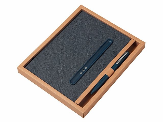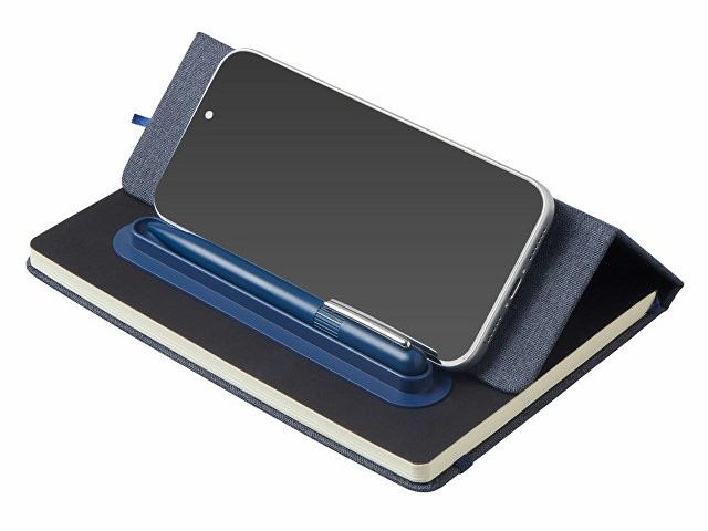 Набор блокнот А5 с магнитным держателем для ручки и подставкой для телефона и металлической шариковой ручкой "NotaBene", темно-синий