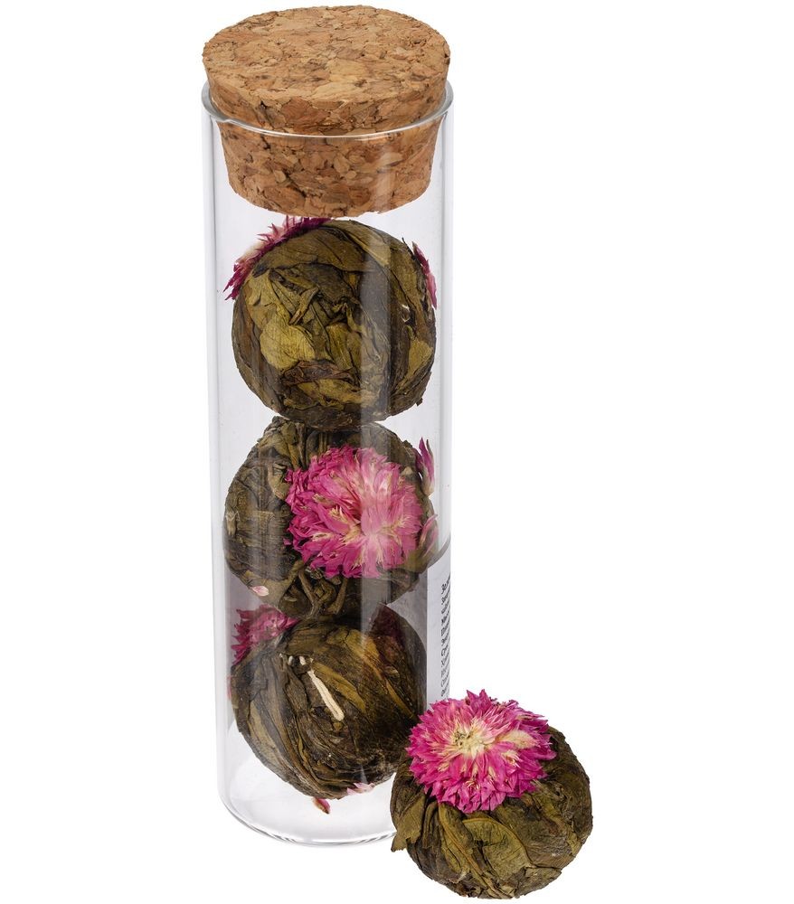 связанный зеленый чай с цветами «Нефритовый Лотос» (состав: зеленый чай сенча, цветы хризантемы), вес 25 г — благодаря особой технологии скрутки чай, словно цветок, распускается в чайнике или чашке, при заваривании рекомендуем использовать прозрачную стеклянную посуду;