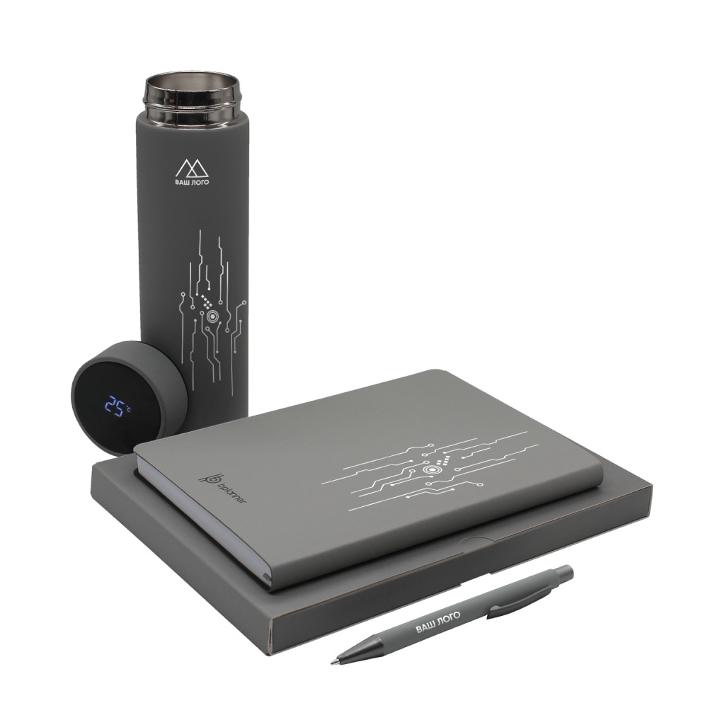 Набор с ежедневником Bplanner Street – полезен и в офисе, и на улице. Набор состоит из уникального ежедневника Bplanner, ручки Trinity Kg Si Gum с поверхностью soft-touch, урбанистического термоса Reactor с датчиком температуры жидкости и ультрамодного шоппера Superbag.