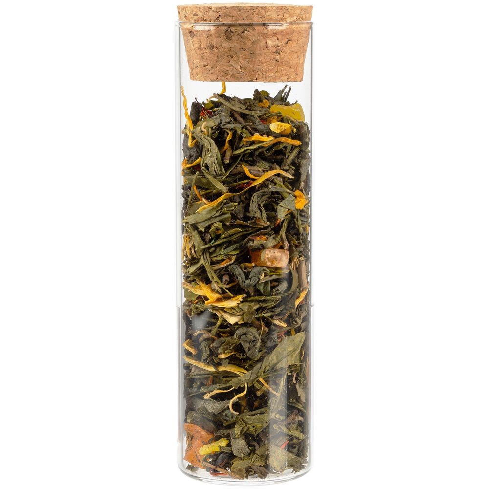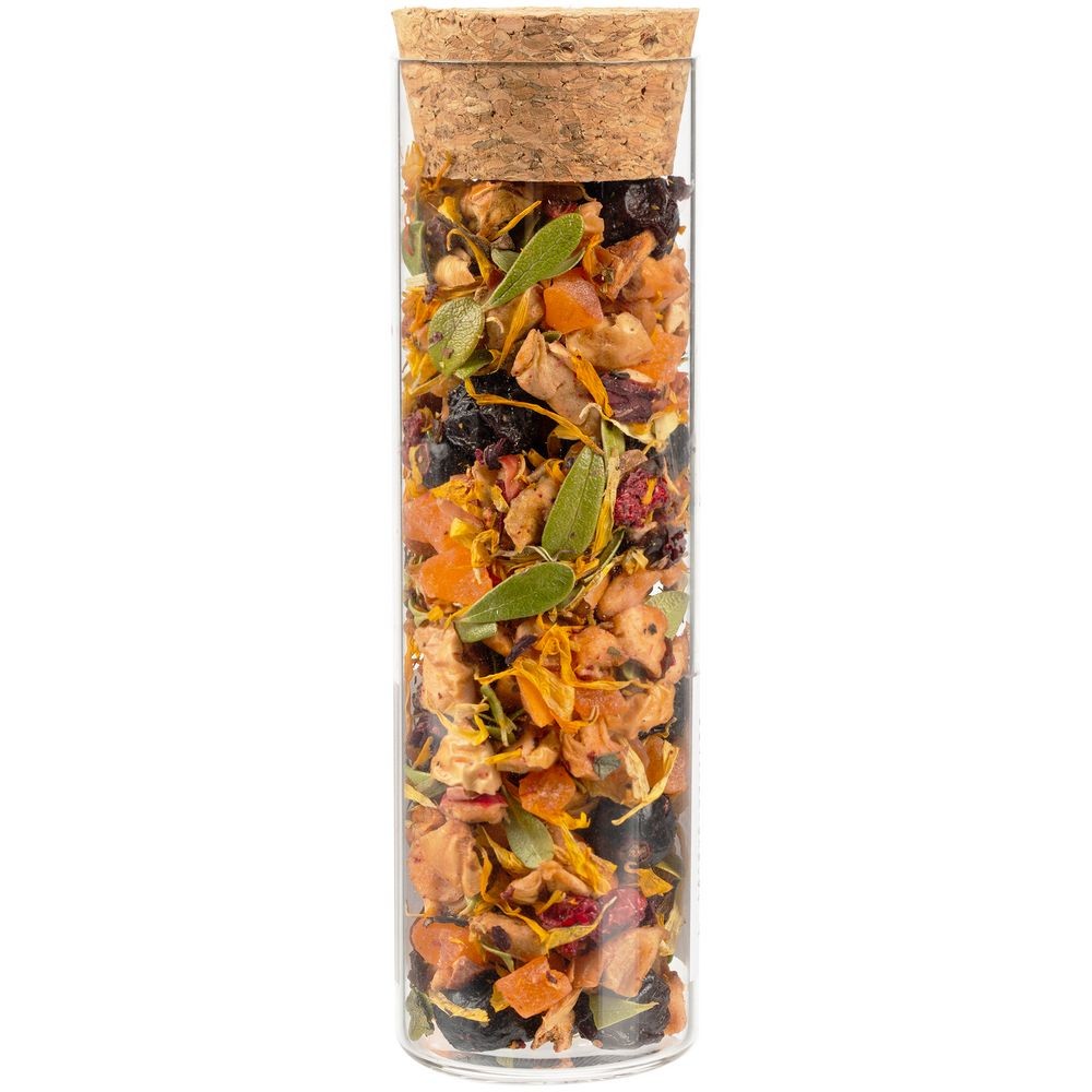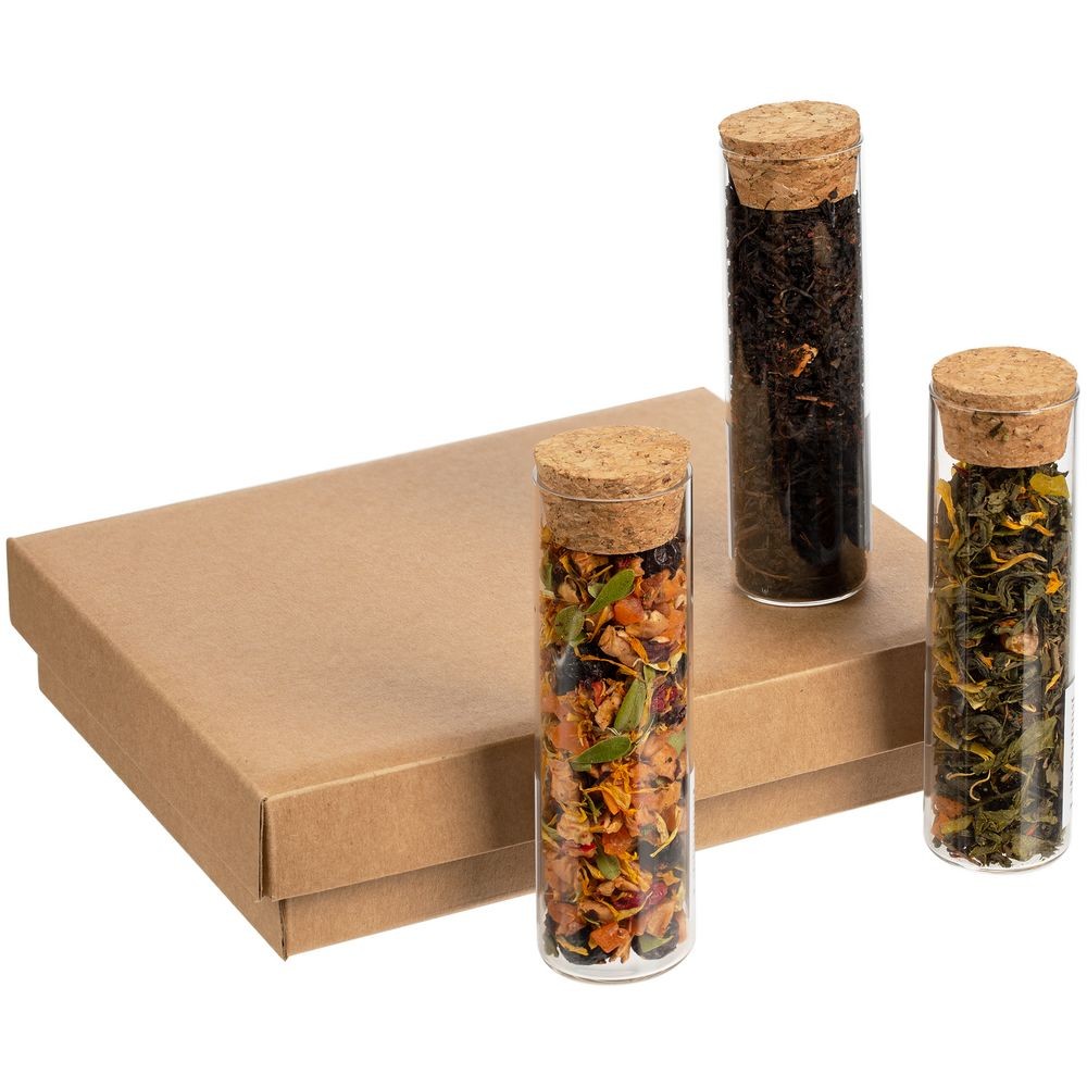 чай зеленый «Восемь сокровищ Шаолиня» (состав: сенча, зеленый чай ганпаудер, папайя, лепестки сафлора, лепестки календулы, ароматизатор «клубника»), вес 25 г; чай черный «Груша-гранат» (состав: черный индийский чай, сушеное яблоко, сушеные цветки граната, ароматизаторы «груша», «гранат»), вес 30 г; фруктовый напиток «Фруктовый мир» (состав: каркаде резанный, сушеное яблоко, ежевика сублимированная, облепиха сублимированная, смородина сублимированная, малина сублимированная, календула, плоды черноплодной рябины, кожура шиповника, лист брусники, цукаты «папайя», ароматизатор «малина», ароматизатор «вишня»), вес 40 г. Набор упакован в крафтовую коробку с ложементом.