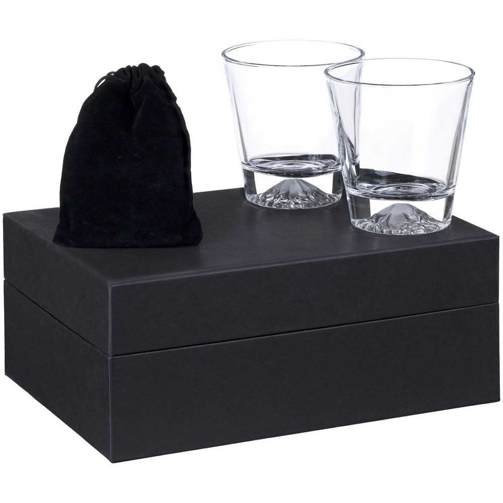 В наборе: 2 бокала, 6 камней для охлаждения напитка, бархатный мешочек для удобного хранения камней, подарочная коробка.