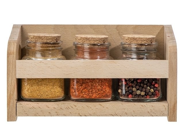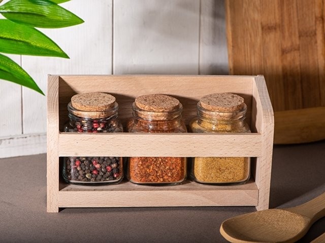 Специи идут в комплекте с миниатюрной и стильной подставкой. Благодаря наличию зон под нанесение, подаренный набор будет служить отличным напоминанием о дарителе.