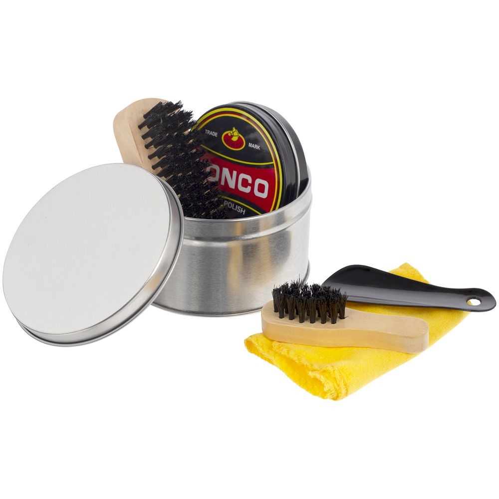 Компактное решение для ухода за обувью — все самое необходимое в жестяной коробочке.В набор входят: