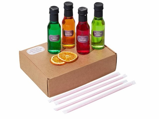 Подарочный набор, который превращает любой вечер в маленький праздник. В стильной упаковке собраны: - 4 бутылочки сиропов по 100 мл с яркими вкусами: Лайм, Маракуйя, Мята, Гренадин – классика коктейльного бармена. - 6 трубочек для коктейлей. - Подобранные специи для изящного декора напитков. - 4 карточки с рецептами – готовые идеи для быстрого приготовления коктейлей. Такой набор – универсальный и статусный подарок для партнёров, клиентов или сотрудников. Он подчеркнёт внимание к деталям, создаст атмосферу гостеприимства и станет стильным акцентом любого корпоративного мероприятия. В комплект входит: - бутылки с сиропом для коктейлей 100 мл: "Лайм", "Маракуйя", "Мята", "Гренадин" - трубочки для коктейля 6 шт. - специи для декора коктейля - карточки с рецептами 4 шт.
