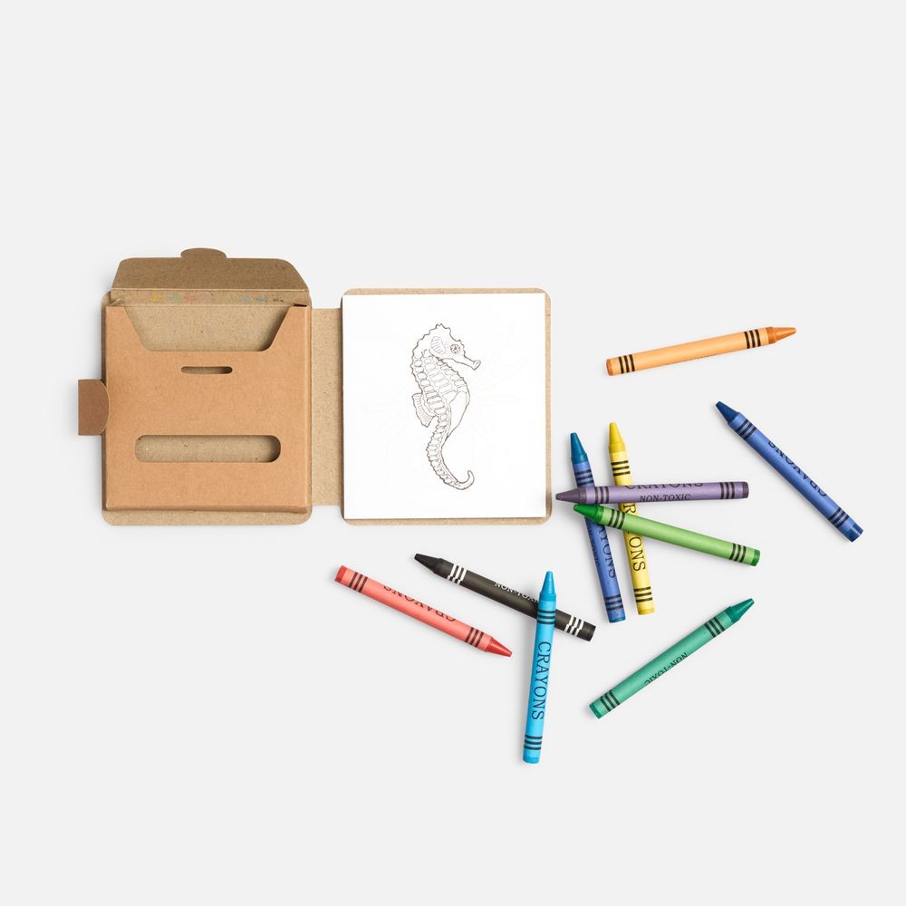 В комплекте 11 цветных восковых мелков и блокнот на 40 страниц для раскрашивания и рисования: 12 страниц с рисунками и 28 чистых страниц. Блокнот и мелки компактно хранятся под одной обложкой.