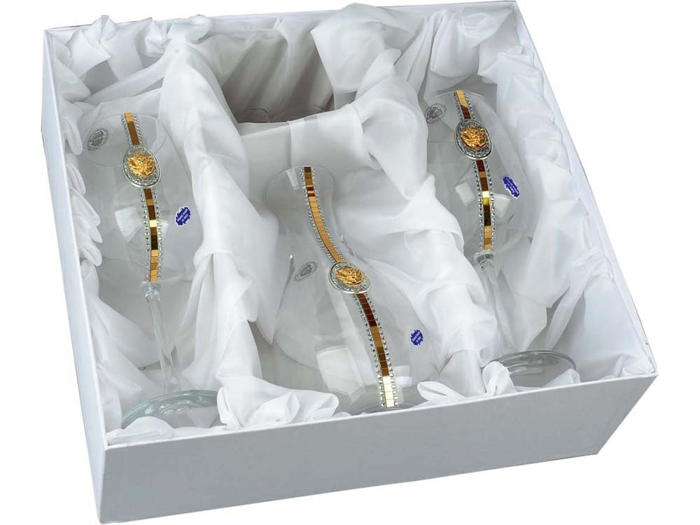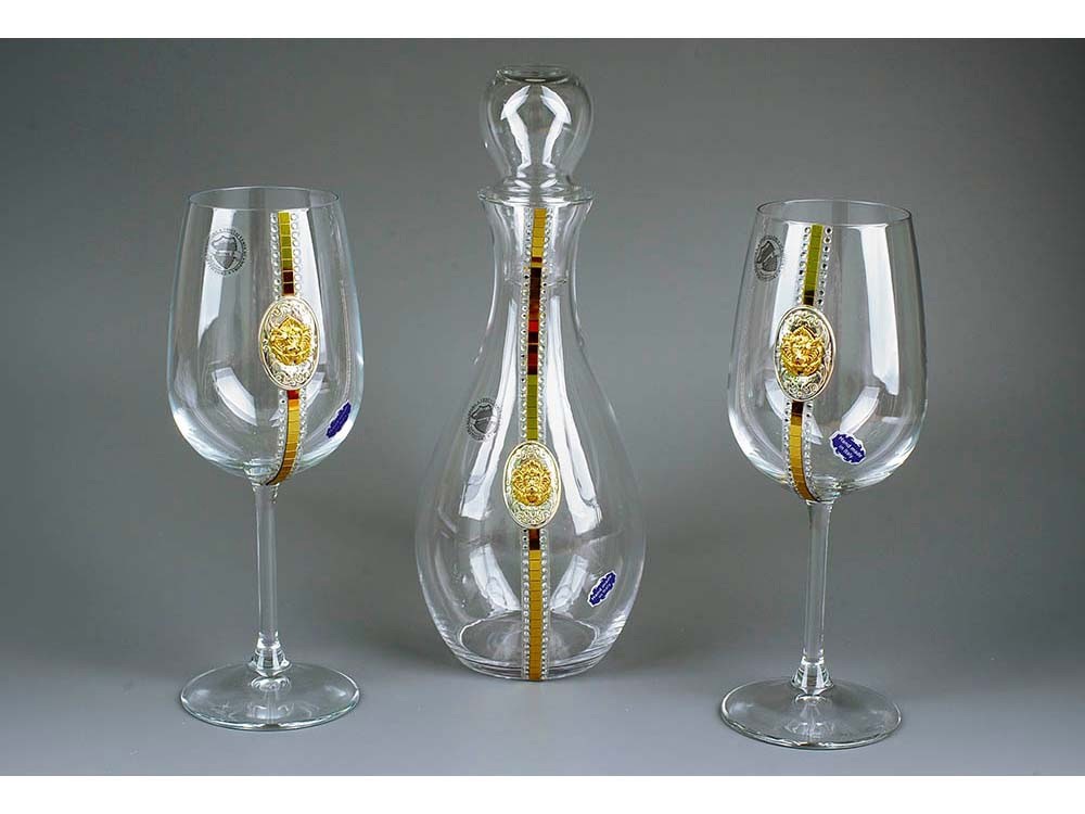 Набор для вина "Львиное сердце" включает изысканный графин объемом 1 литр, два бокала по 500 мл с кристалами.Графин выполнен из высококачественного стекла с изящной формой, подчеркивающей силу и грацию льва — символа мужества и достоинства. Бокалы украшены сверкающими кристаллами,которые придают им особый блеск и делают каждое застолье особенным. Этот стильный набор идеально подойдет для ценителей вина и станет великолепным украшением праздничного стола или отличным подарком для любителей изысканных аксессуаров.