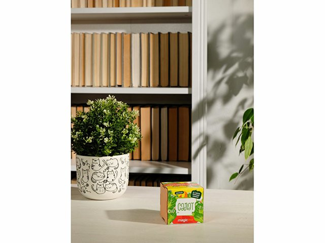 Экокуб – это современный набор для выращивания растения в домашних условиях. Вы получаете все необходимое от семян и грунта до подробной инструкции по уходу за сеянцем. Также экокуб станет отличным украшением вашего интерьера, ведь он сделан из натурального дерева и будет радовать вас ни один месяц. Экокуб Magicme в его минималистичном дизайне впишется в интерьер офиса или дома. Деревянный куб отличается экологическим составом благодаря использованию берёзовой древесины и универсальной краске на водной основе, что позволяет выращивать растение не только взрослым, но и детям. Набор включает: кубический горшок из натуральной берёзовой древесины, семена и специальный питательный грунт, подходящий для конкретного сорта.