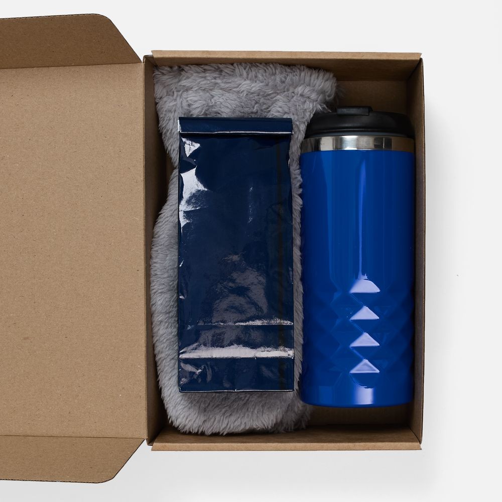 Материал: термостакан, крышка - пластик; внутренняя стенка - нержавеющая сталь; варежки - полиэстер 100%, плотность 280 г/м², длинноворсовый флис; коробка - микрогофрокартон